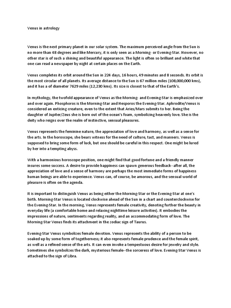 Premium Report - astrology.community 7 reviews for Premium Report. I would definitely recommend this service to any aspiring Astrologist, a detailed report is generated which can assist greatly in understanding and learning, there are also other elements added like numerology and a 5 year prediction which is a real bonus!! Very detailed and accurate report. Astrology Report Options GENERAL NATAL REPORTS describe a person's personality, tendencies, inclinations, and areas of potential strength and weakness. Your natal report provides guidance and direction that can be helpful and useful to you. 5 Reports to choose from. SPECIALIZED NATAL REPORTS: There are a variety of specialized reports. Types of Astrological Reports online at Venus Group, Birth ... Depending on the desired detail level, we offer two report types: Sun, Mercury, Venus, Mars, Jupiter, Saturn, Uranus, Neptune and Pluto MAXIMUM detail for 2 months (Sun to Pluto). Mars, Jupiter, Saturn, Uranus, Neptune and Pluto MEDIUM detail for 1 year (Mars to Pluto). Astrology Topics: Interpreting Venus Return Charts | Cafe ... Key Things to Look For in the Venus Return Chart: The position of Venus in the Return chart, by house and aspect. (The Venus sign will be the birth sign of Venus). Planets on the angles (the cusps of the first, fourth, seventh, and tenth houses). Strong configurations (aspects) in the chart, especially when Venus is involved.