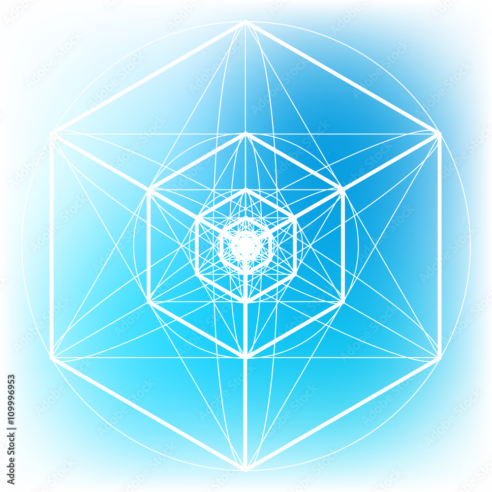 The science and mathematics abstract background with circles, cube, triangles and a lot of lines. Sacred geometry backdrop. The chemistry and ...